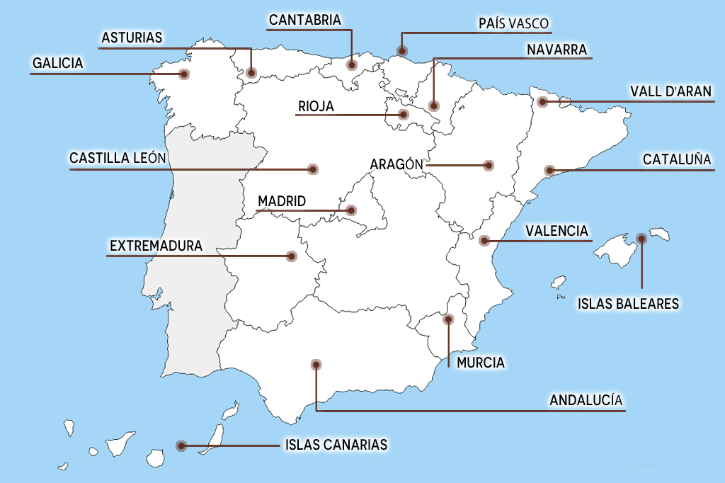 Queremos que degustéis la selección de los más típicos platos representativos de las Comunidades Autonómicas acompañado del extenso surtido de vinos de España que nuestra bodega ofrece.